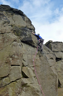 A few people at the crag, fortunately on different routes, although this didn't prevent some wrangling over crossed ropes and shared belays owing to some lack of consideration by a veteran pair; and a novice party making very slow progress. Fair play to the latter who were very laid back about it all.