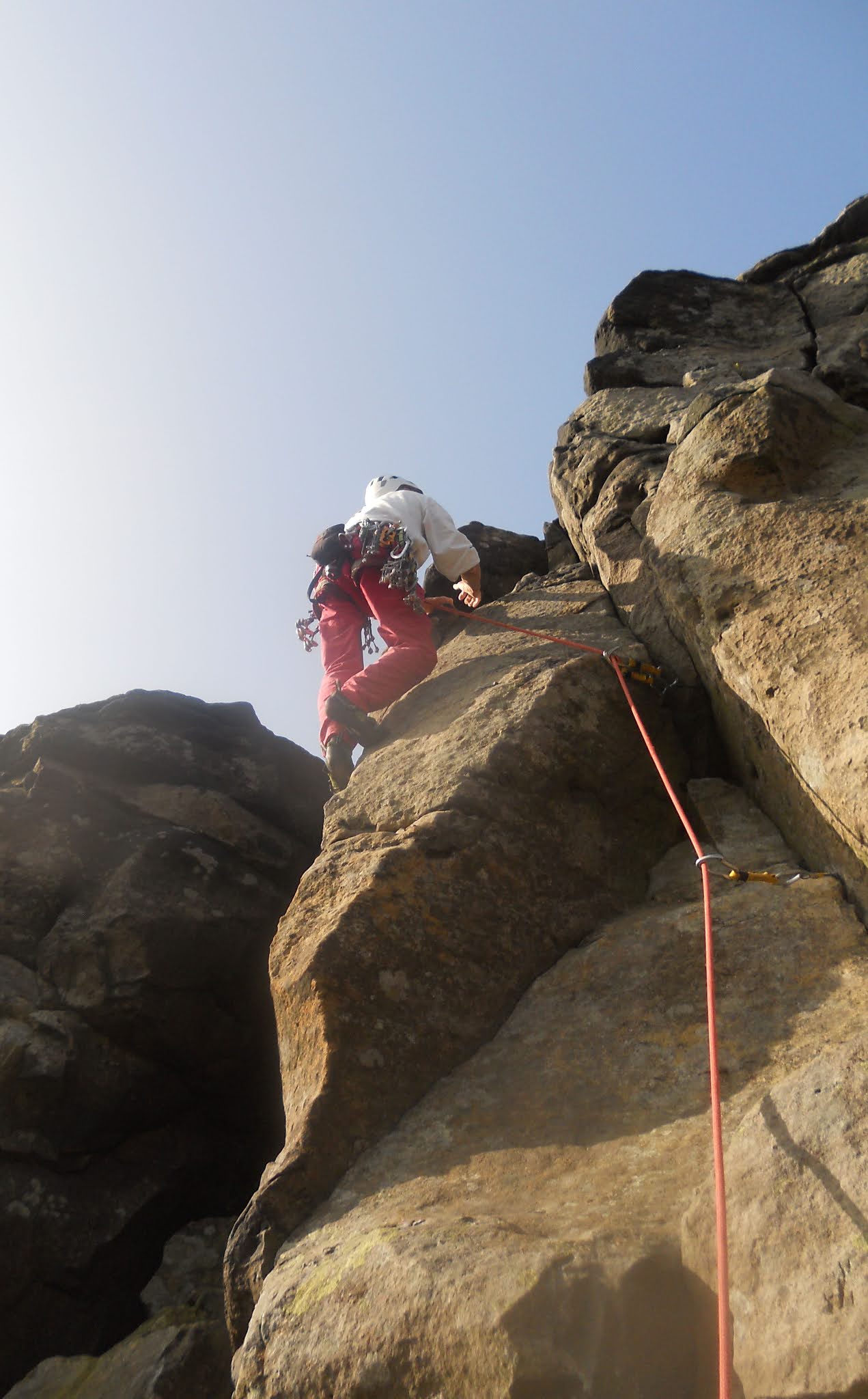 CB checking out a bloke on a rope working "The Italian Connection" on Raven's Scar